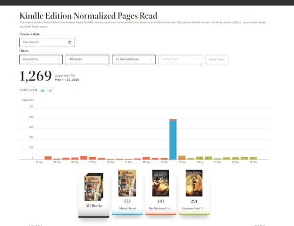 I’ve been watching my KENP stats this month, which reveal that someone’s been reading my books!