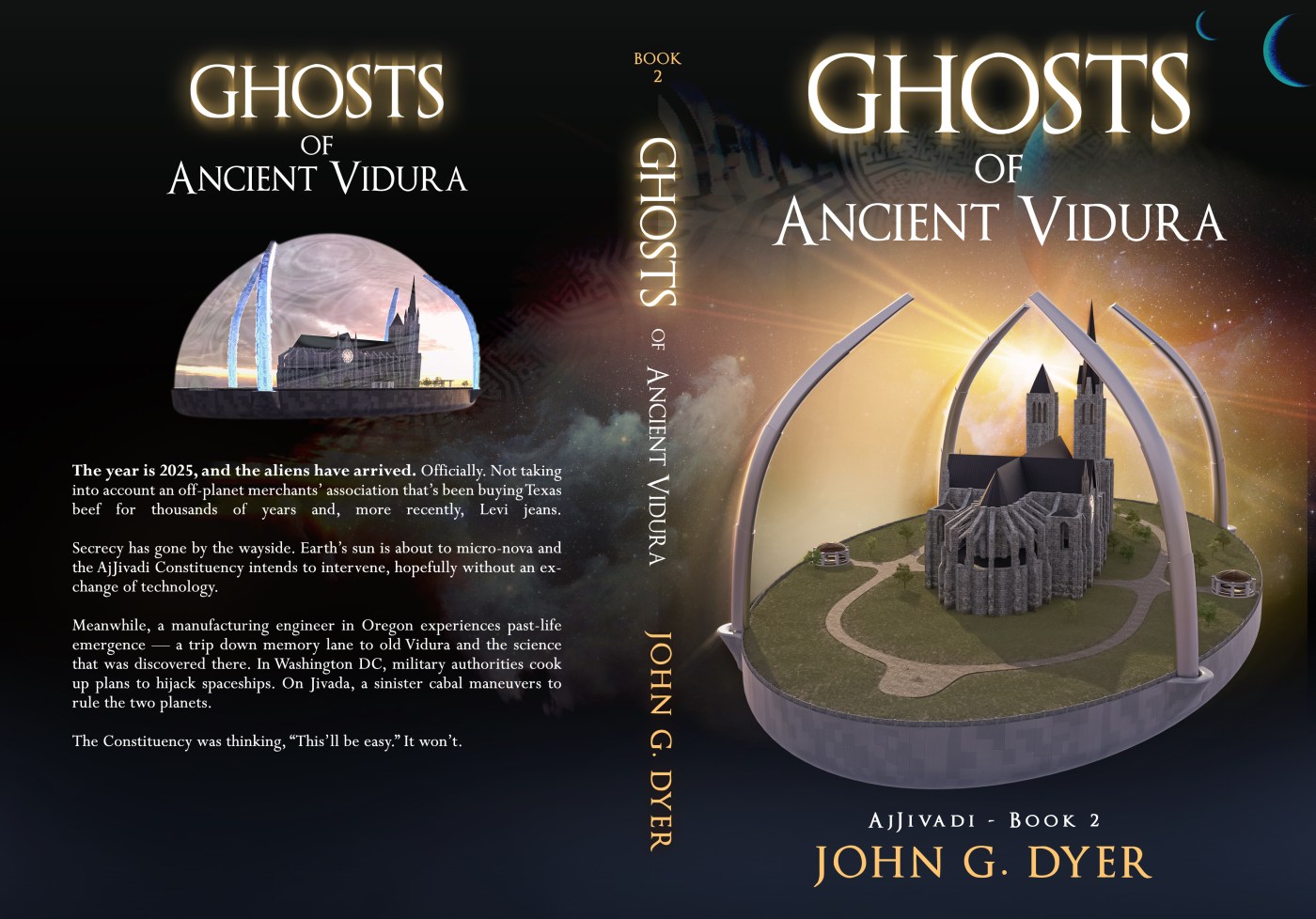 Meanwhile, a native human experiences past-life emergence — recalling old Vidura and the principles of trans-dimensional physics. At a furloughed missile launch site in Nevada, an AjJivadi workforce, long barred from Earth tourism, is going on vacation, campsites popping up like mushrooms after a soaking rain. The ghosts of ancient Vidura have returned.
