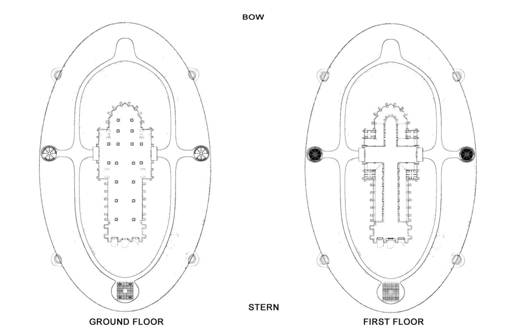 Yes, I can see foliage poking through walls and windows. It’s been fixed. My point is: Loyal House is 122 meters long, 27 meters wide overall, 45 meters wide in the sanctuary, center section ceiling height 35 meters.