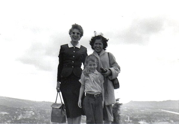 Hawaii. February, 1956. Mom, Dad and I traveled to Manila by ourselves, leaving my brother Mike and newly-minted stepsister Carolyn behind to finish their respective school years. We rode Lockheed Constellation aircraft most of the way. During one leg of the trip, we flew into enough turbulence to empty out all the overhead storage compartments. We were over the ocean, a long way from land. It scared everyone onboard.